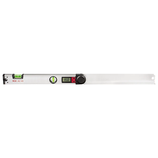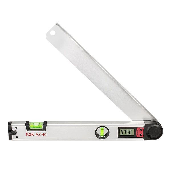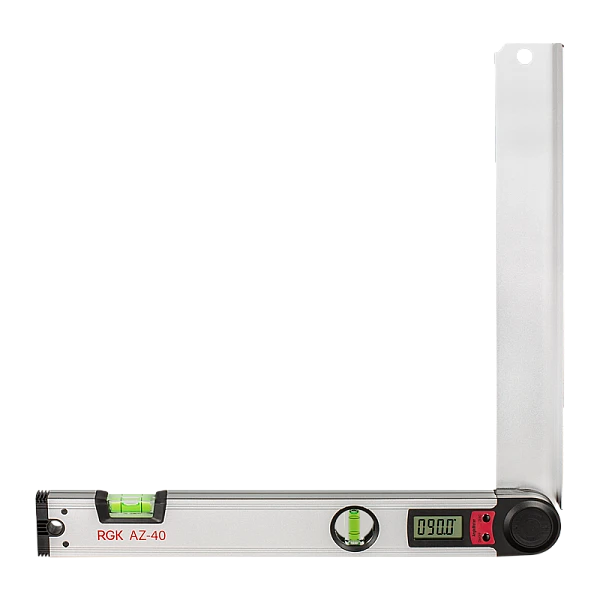 Электронный угломер RGK AZ-40 - измеряет угловые значения в диапазоне от 0° до 225° с отображением результатов на цифровой экран. С помощью угломера вы можете измерить как абсолютные угловые значения, так и относительные.