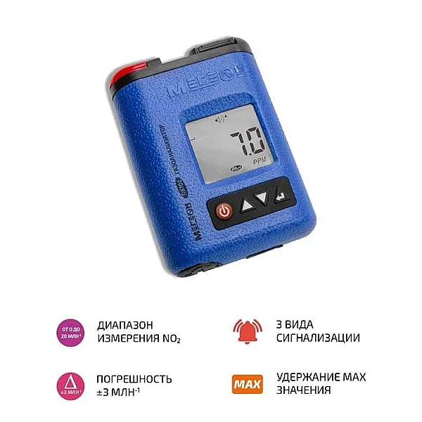 Газоанализатор МЕГЕОН 08106 – ручной измерительный инструмент, который требуется для анализа количественного и качественного состава диоксида азота в воздухе. Принцип действия устройства основан на замере величин электрического тока, получаемого электрохимическим детектором в результате химического взаимодействия с участием частиц изучаемого газа. Два настраиваемых уровня включения тревожного сигнала. Три вида сигнализации: визуальный, звуковой и вибрационный.