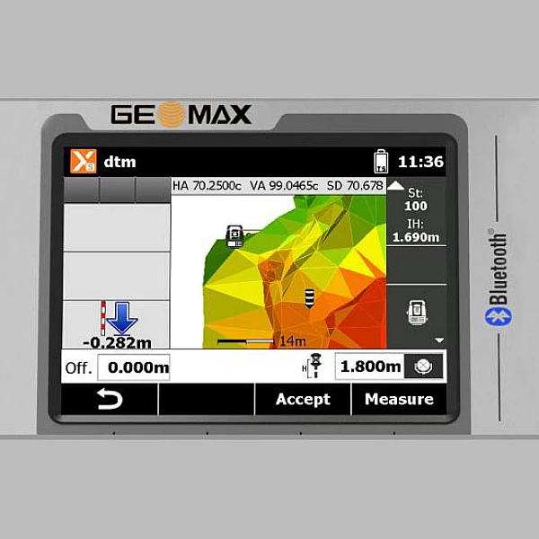 Тахеометр Geomax Zoom40 5' R500 - это электронный тахеометр, предназначенный для задач в областях геодезии, инженерного дела или строительства. Geomax Zoom40 поставляется с большим 3,5-дюймовым Q-VGA дисплеем, 2 ГБ оперативной памяти и 500-миллиметровым диапазоном без призмы. Тахеомент обладает графическим изображением с высоким разрешением Colour- и Touch. Полностью открытый Windows® CE. Измерение расстояния на отражателе и без призмы 500 м. Имеет следующие программные обеспечения: GeoMax X-PAD, GeoMax FieldGenius и Carlson SurvCE.