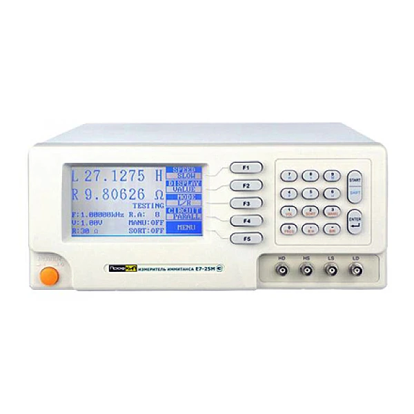 Измеритель иммитанса Е7-25М предназначен для измерения иммитанса различных электрорадиокомпонентов: резисторов, конденсаторов, катушек индуктивности, полупроводниковых приборов на измерительных частотах от 50 Гц до 300 кГц.