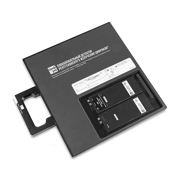 Комплекс включает в себя плоскопанельный рентгеновский детектор, управляющий планшет оператора-дефектоскописта и оснастку для позиционирования детектора на объекте контроля.