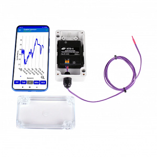- В процессе регистрации данные о температуре бетона через заданный пользователем интервал времени записываются во внутреннюю энергонезависимую память прибора. Период записываемых отсчетов устанавливается заранее с помощью сервисного приложения, установленного на смартфоне.