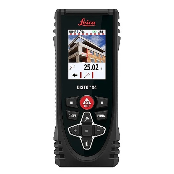 Лазерный дальномер Leica Disto X4 – это профессиональный прибор, который позволяет с высокой точностью измерять и вычислять линейные расстояния. Он предназначен для эксплуатации в самых сложных условиях и дает возможность работать на открытой площадке в условиях яркого освещения, когда лазерная точка дальномера не видна на поверхности.