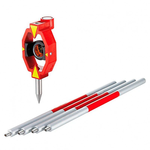 Мини-призма, установленная на пластиковом держателе с резьбовыми креплениями 1/4 дюйма. Включает круговой уровень, четырехсекционную веху GLS115 и наконечник, константа 0-призмы, максимальная IR дальность (в инфракрасном диапазоне) 2000 м.