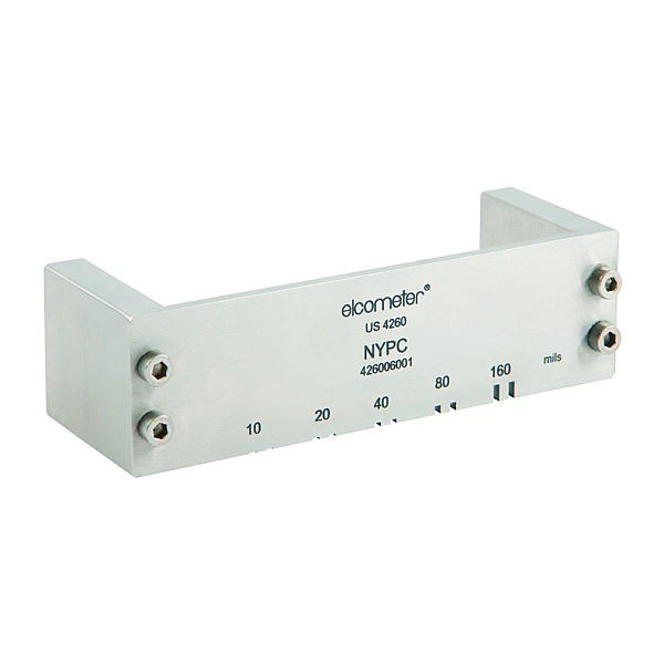 Прибор для качественной оценки выравнивания покрытий Elcometer 4260, материал исполнения - нержавеющая сталь имеет прямой скребок с пятью парами пазов последовательно увеличивающейся высоты (25 мкм...4.06 мм)